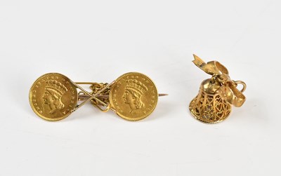 Lot 270 - A 9ct yellow gold bell shaped charm/fob and a...