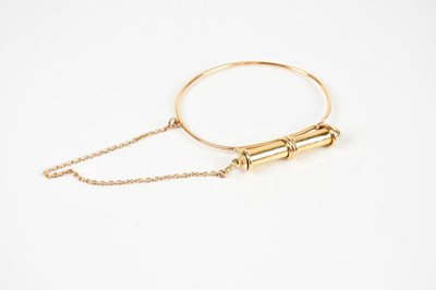 Lot 250 - A yellow metal bangle, with attached yellow...