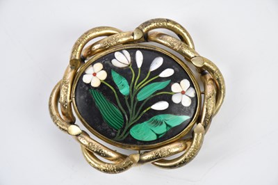 Lot 268 - A Victorian pietra dura mourning brooch of...