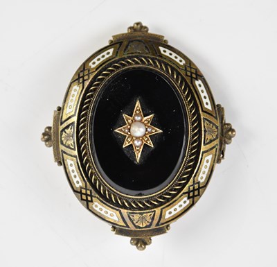 Lot 276 - A Victorian gilt metal mourning brooch, set...