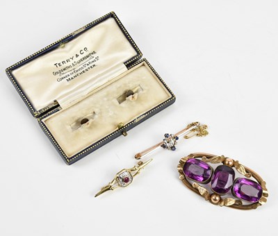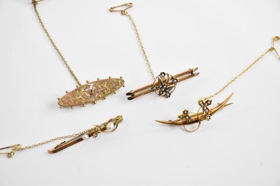 Lot 267 - Four Edwardian 9ct yellow gold brooches, three...