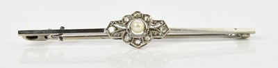 Lot 277 - A 9ct white gold bar brooch set with a seed...