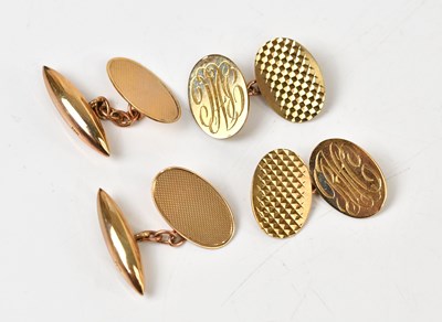 Lot 284 - Two pairs of 9ct yellow gold cufflinks,...