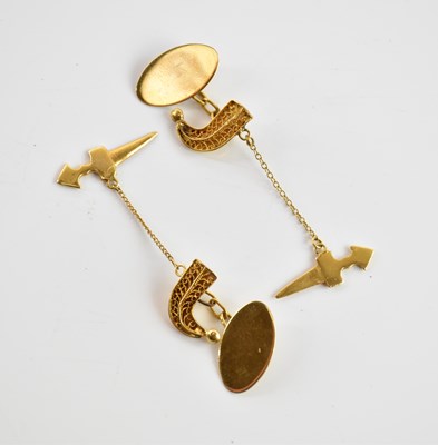 Lot 285 - A pair of yellow metal cufflinks, each with...