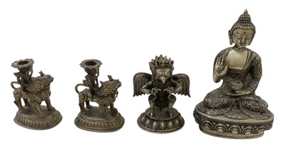 Lot 804 - A pair of modern Chinese bronze candle holders...