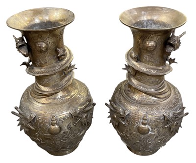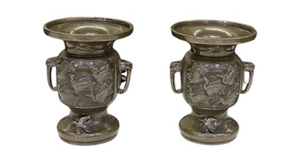 Lot 786 - A pair of Japanese Meiji period bronze twin...