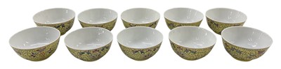 Lot 810 - A set of ten modern Chinese yellow ground rice...