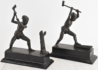 Lot 802 - A pair of Thai bronze figures of woodcutters,...