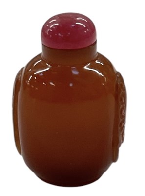 Lot 795 - A Chinese carved amber coloured glass snuff...