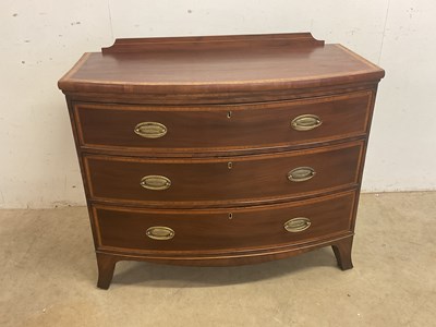 Lot 413 - A mahogany satinwood crossbanded bowfronted...