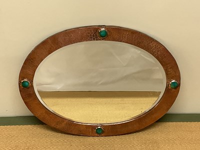 Lot 391 - An Arts and Crafts copper oval wall mirror...