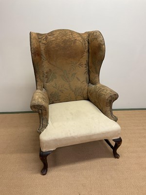 Lot 402 - A circa 1900 wingback armchair with stud...