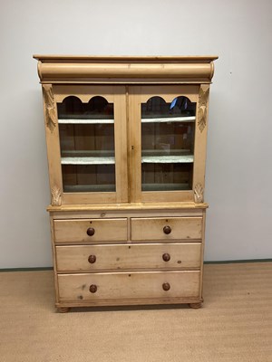 Lot 419 - A stripped pine bookcase on chest with moulded...