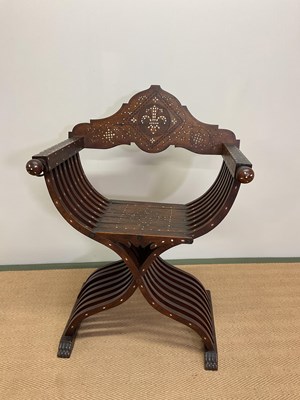 Lot 427 - A circa 1900 bone inlaid Savonarola chair of...
