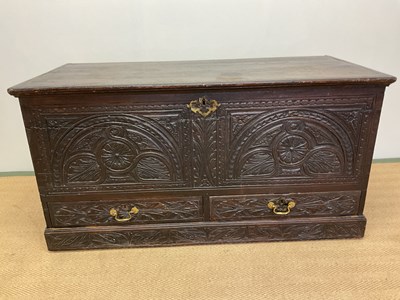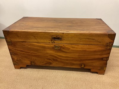 Lot 432 - A camphor wood blanket box with brass mounts,...
