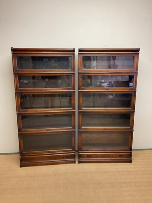 Lot 389 - GLOBE WERNICKE; a pair of oak bookcases,...