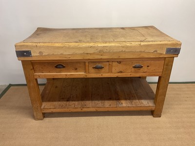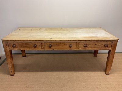 Lot 411 - An oak farmhouse plank top table, height 72cm,...