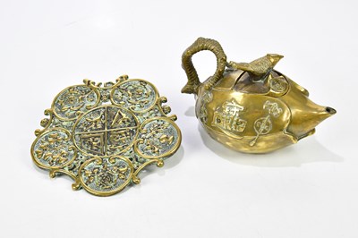 Lot 1354 - A Chinese cast brass teapot embossed with...