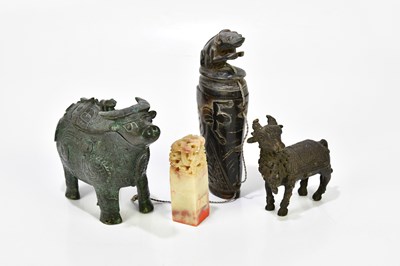 Lot 1352 - A Chinese carved hardstone seal, decorated...