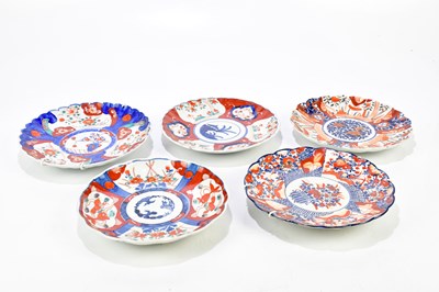 Lot 1353 - Five 20th century Japanese Imari wall chargers,...