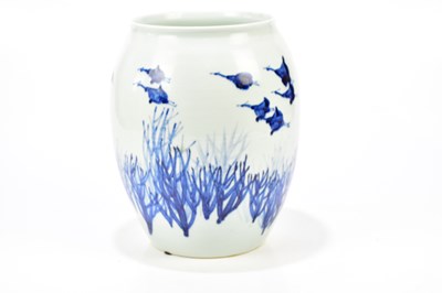 Lot 1362 - A modern Chinese blue and white vase decorated...