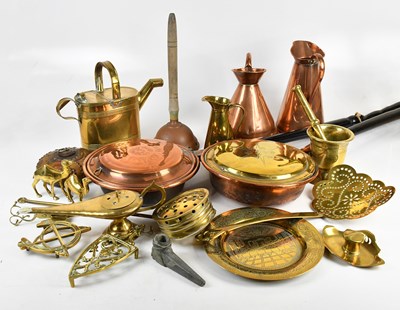 Lot 1334 - Two 19th century copper twin handled pans, a...