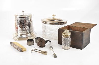 Lot 1430 - A Victorian silver plated biscuit barrel and...