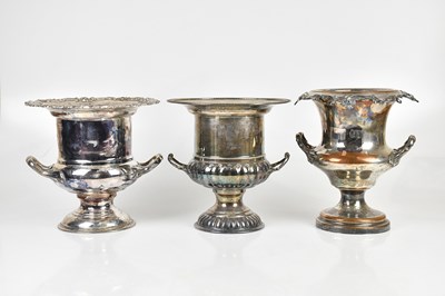 Lot 1427 - Three silver plated ice buckets, largest 27cm...