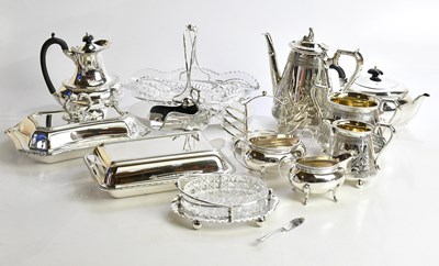 Lot 1413 - A collection of plated items including teapot,...