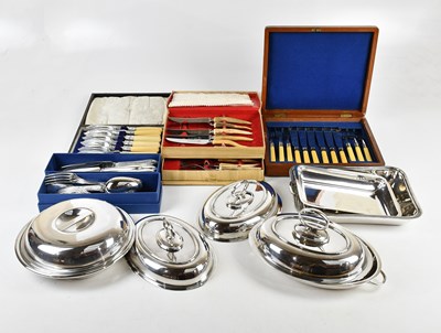 Lot 1420 - A collection of boxed plated cutlery and tureens.